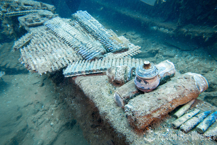 船主:鏑木汽船 造船:播磨造船所。B型平時標準船の内の一隻として昭和17年(1942)3月20日竣工。昭和18年10月7日海軍の一般徴傭船(雑用船)として徴傭。正立した状態で沈んでおり、ブリッジから後半は大破している。甲板にはソフトコーラルやイソギンチャクが多い。船倉には銃弾やトラックなどが積まれている。